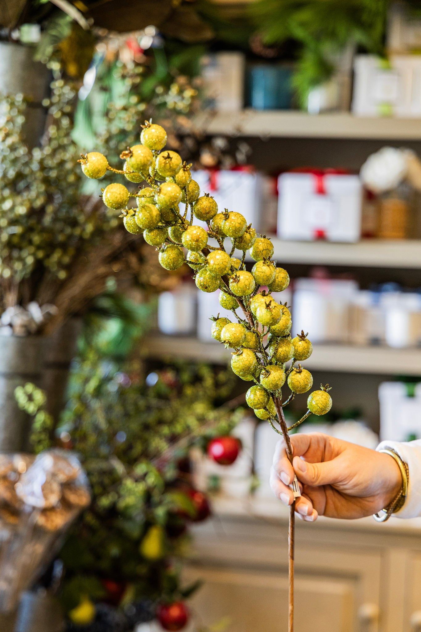 Green Crackle Glitter Rosehip Stem